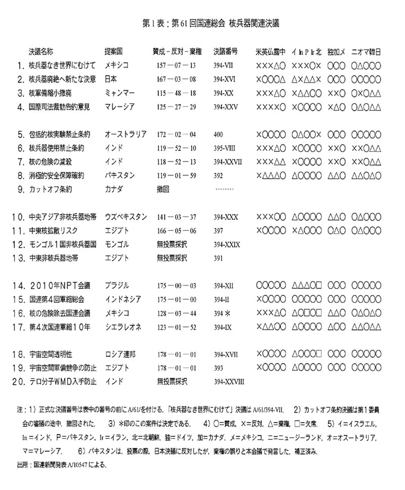 | 第61回国連総会の核兵器関連決議を分析する |
