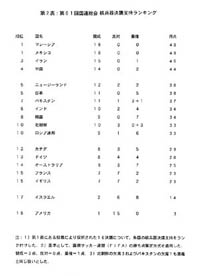 日本は5位タイ…第2集団の30点台の国として、ニュージーランド(新アジェンダ連合)が賛成12、反対と棄権各2、合計38点、また日本が賛成11、反対ゼロ、棄権5、合計38点で、前年同様、5位タイに並んでいた。