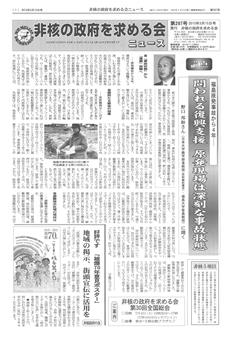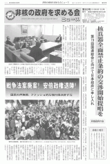 今号は6ページ立て。非核の政府を求める会が被爆70年に向けて開いた講演のつどい「被爆70年と日米核軍事同盟の罪」の模様を紹介しています(講演詳報は次号)。