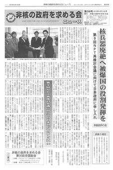今号は、第9回核不拡散条約(NPT)再検討会議で日本政府が核兵器廃絶のために被爆国の役割を果たすよう求める、非核政府の会の要請を紹介。要請文も全文掲載しています。