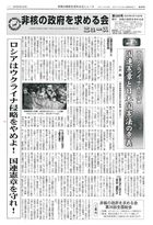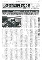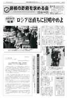 3月号の1面は、ウクライナ侵略を開始したロシアに対し、「直ちに侵略をやめよ」「核兵器使用の威嚇は断じて許されない」と抗議。非核政府の会の「抗議声明」を掲載しています。