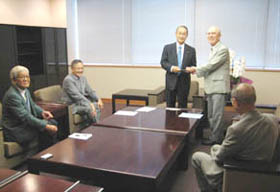 第62回国連総会の開会を1週間後に控えた9月12日、非核の政府を求める会は外務省を訪れ、核兵器のすみやかな廃絶のために、日本政府が国連総会でリーダーシップをとるよう要請しました。国分稔、中嶋篤之助、増田善信の各常任世話人、斎藤俊一事務室長が参加。日本共産党の笠井亮衆議院議員(非核政府の会常任世話人)が同席しました。外務省からは木村仁副大臣らが応対しました。