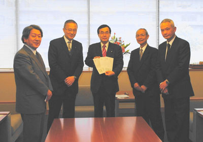 要請には駒場忠親(日本自治体労働組合総連合顧問)、増田善信(気象学者)の各常任世話人と斎藤俊一事務室長が参加。日本共産党の笠井亮衆議院議員(会常任世話人)が同席しました。