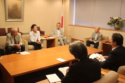 外務省からは堀井巌政務官らが応対。核兵器禁止条約について「安全保障環境について考慮されていない。核保有国の理解を得ることが大事。現状で(条約に)署名することは考えていない」「日米同盟のもとで核抑止力を維持する必要がある」と従来の姿勢に固執しました。